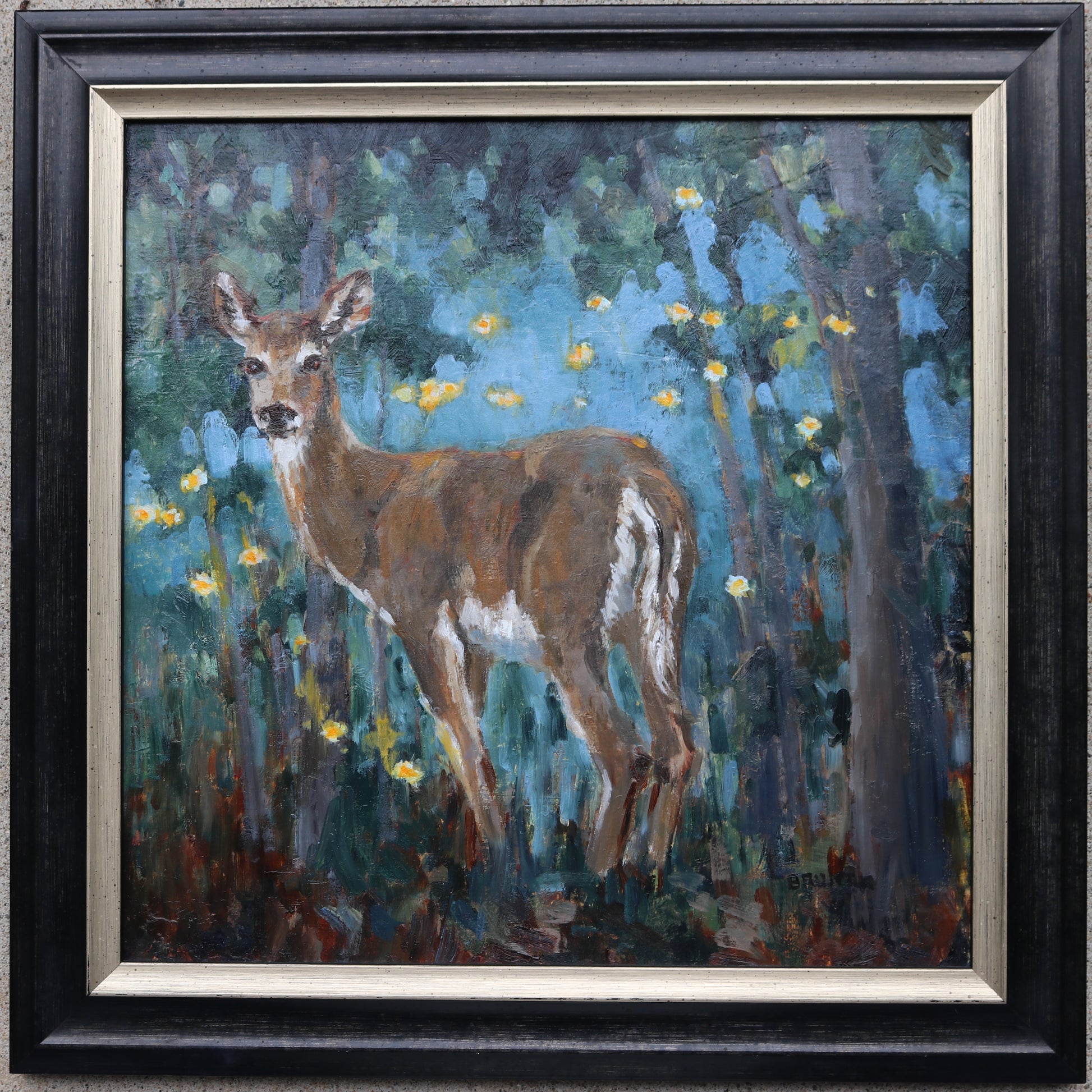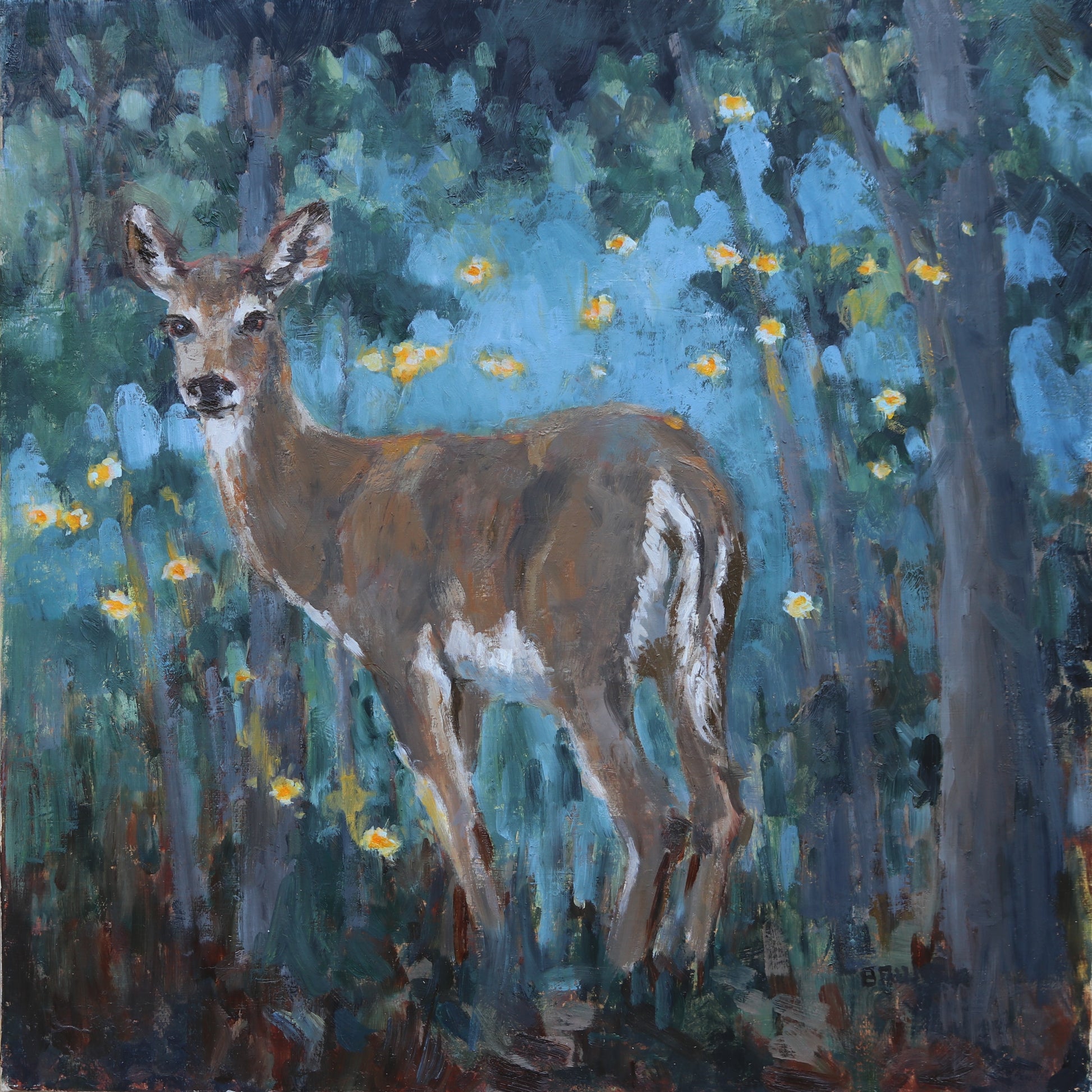 Oil on linen panel 12" x 12" x .125". Option to pruchase painting framed