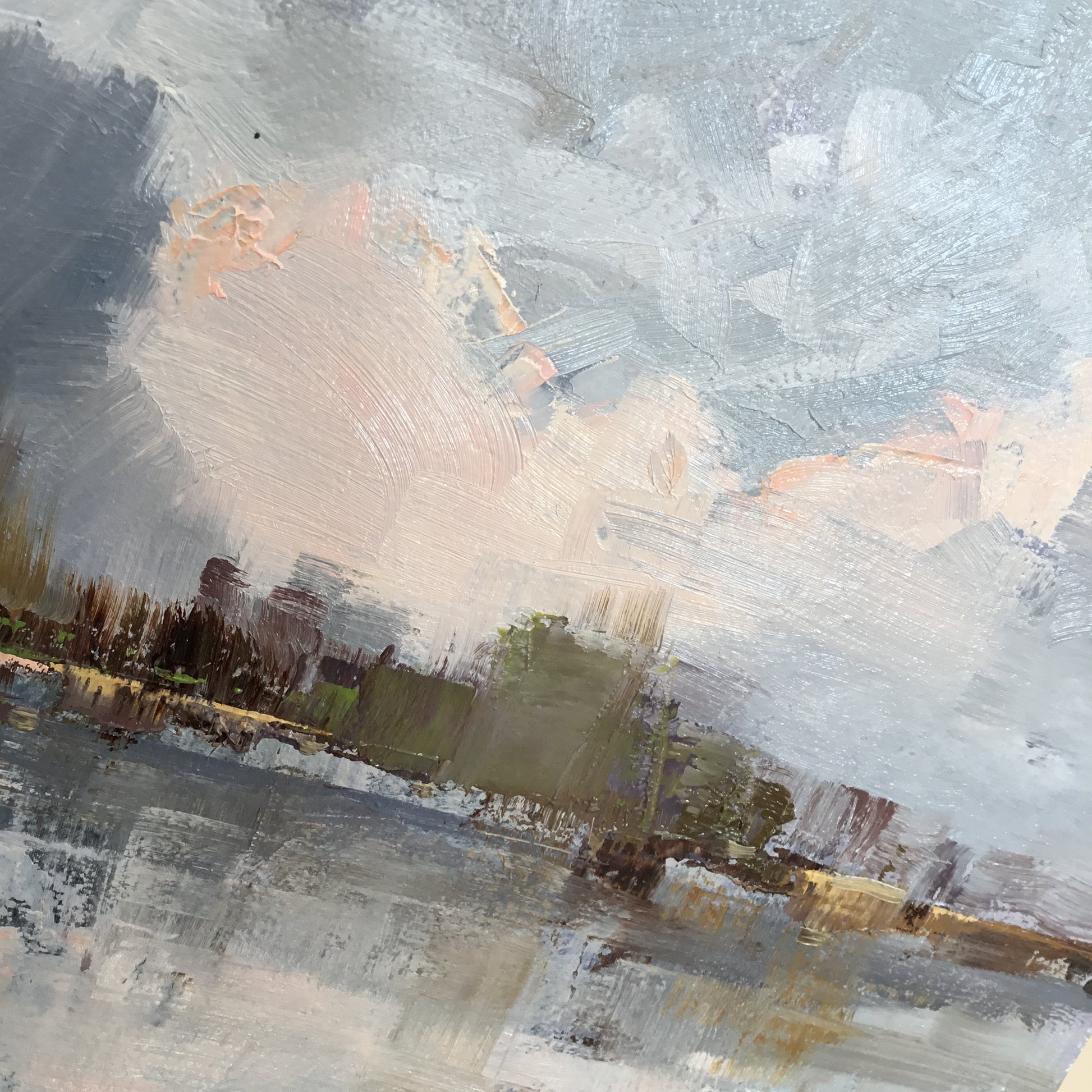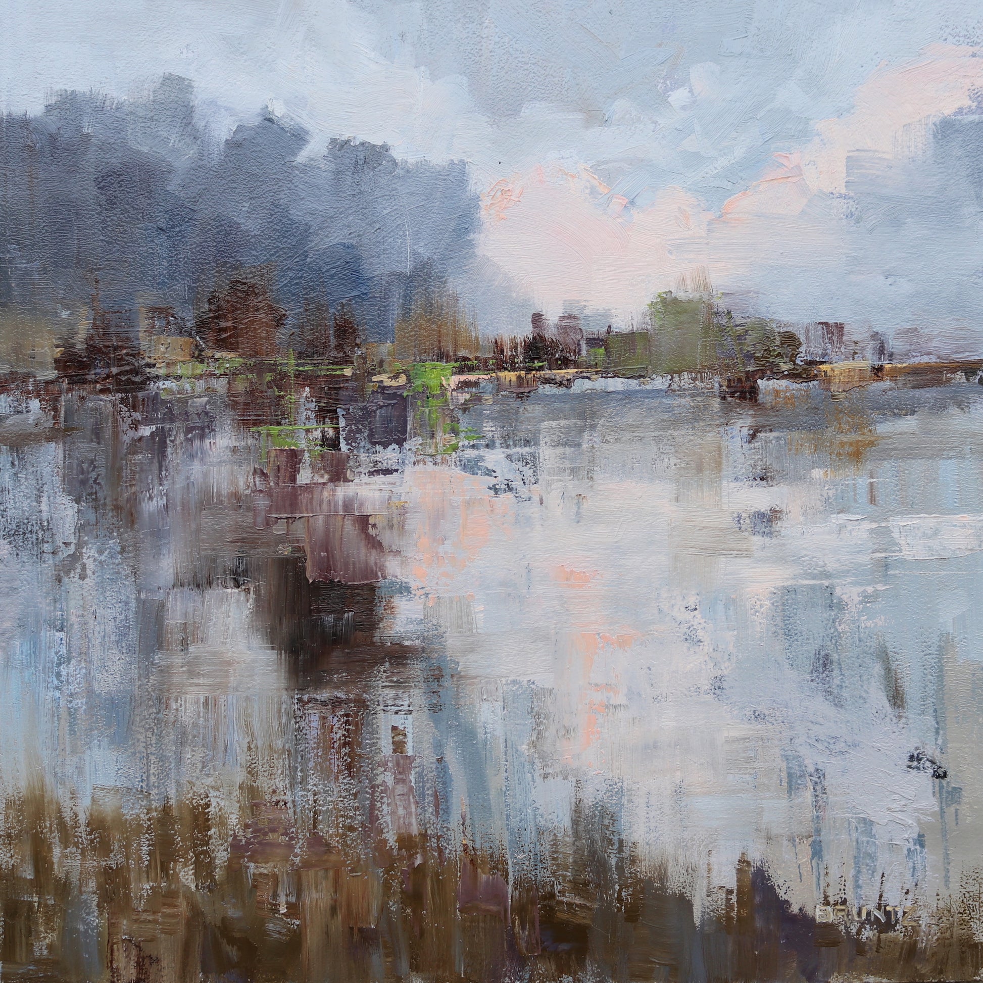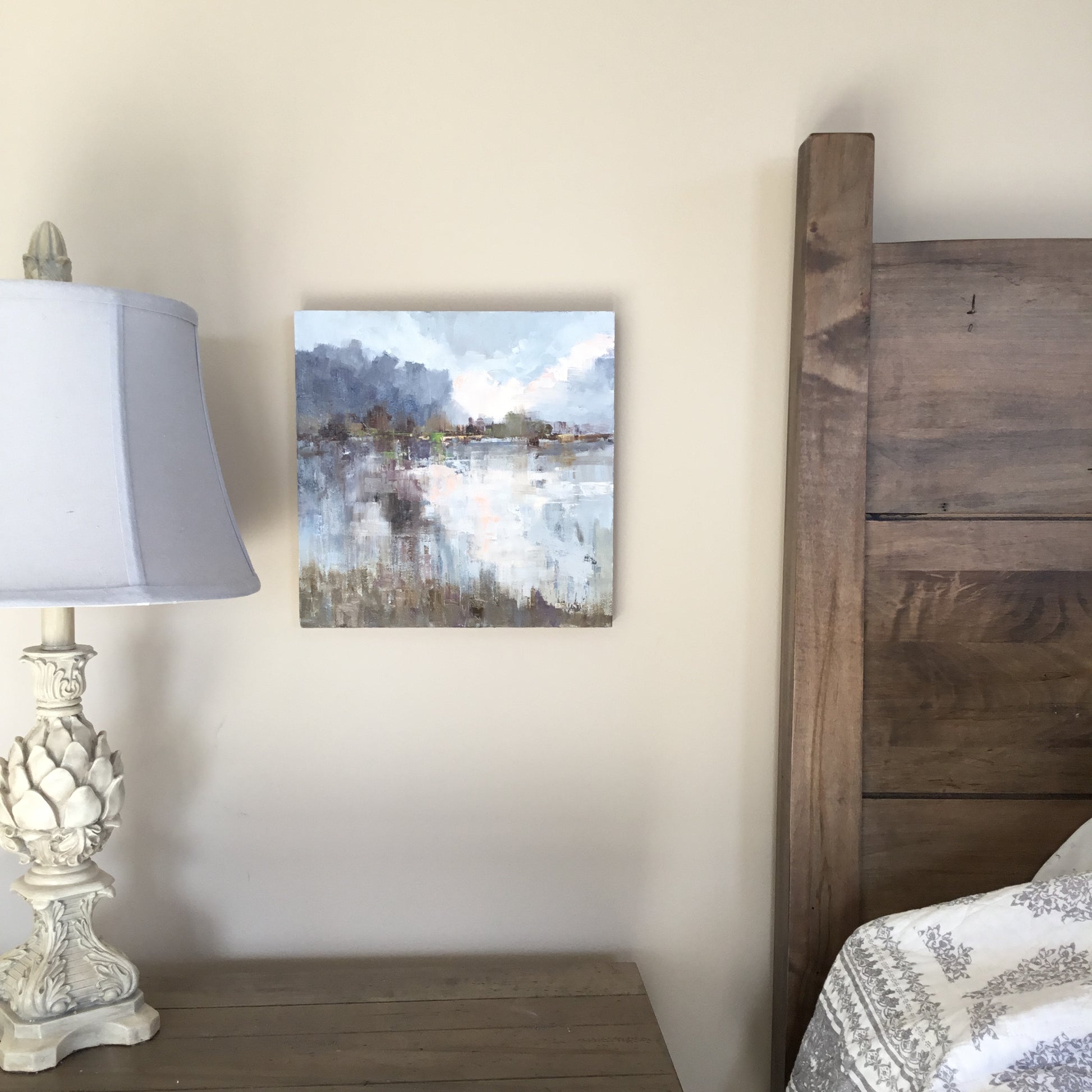 Contemporary landscape painting. 12” x 12” x 1” oil on cradled birch panel.